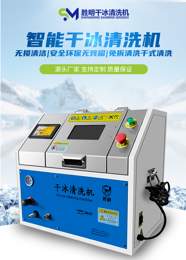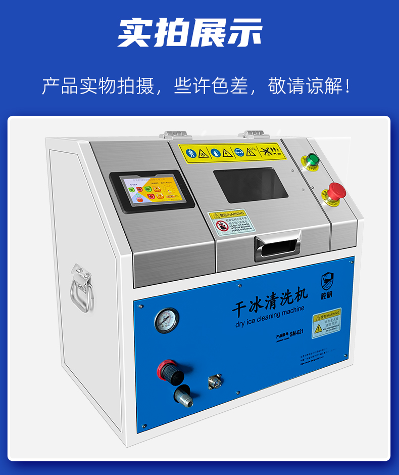 干冰清洗主要的设备是一台干冰清洗机和一台空压机,就可以对产品或者设备进行清洗作业,操作也相对而言比较简便