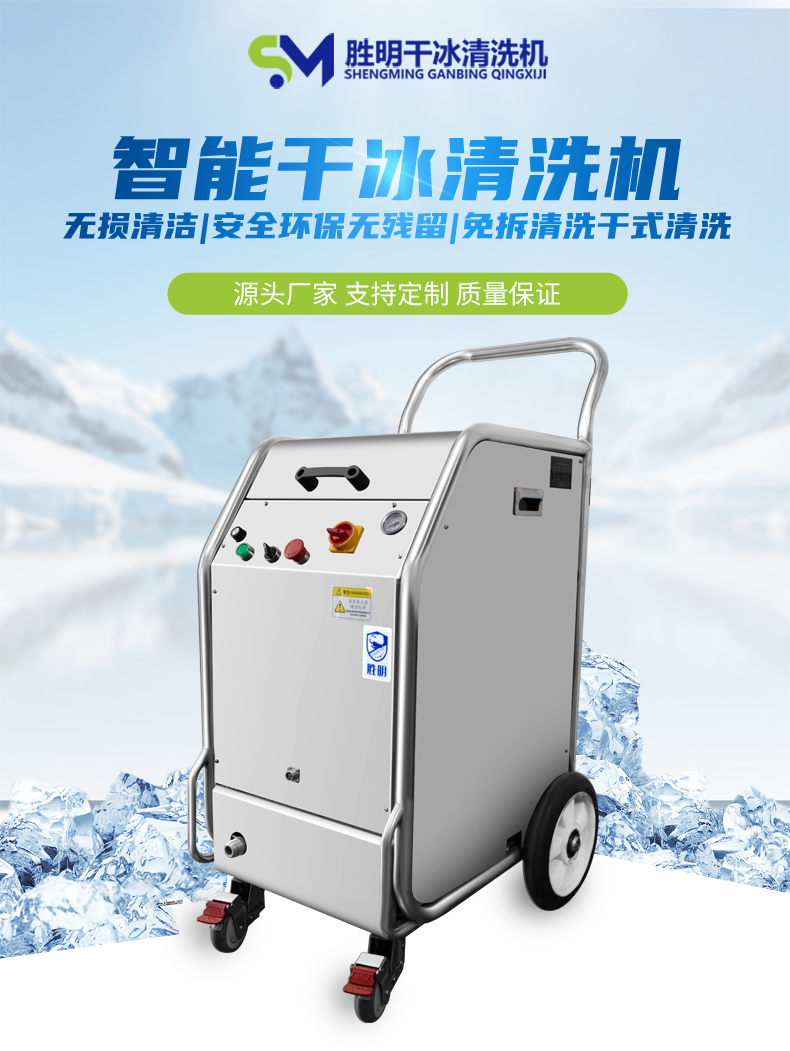 干冰清洗主要的设备是一台干冰清洗机和一台空压机,就可以对产品或者设备进行清洗作业,操作也相对而言比较简便