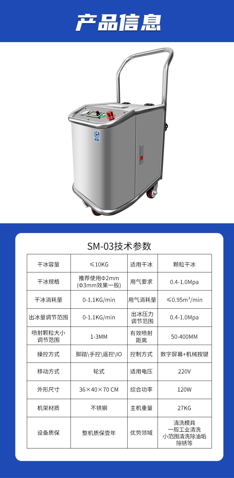 干冰清洗主要的设备是一台干冰清洗机和一台空压机,就可以对产品或者设备进行清洗作业,操作也相对而言比较简便
