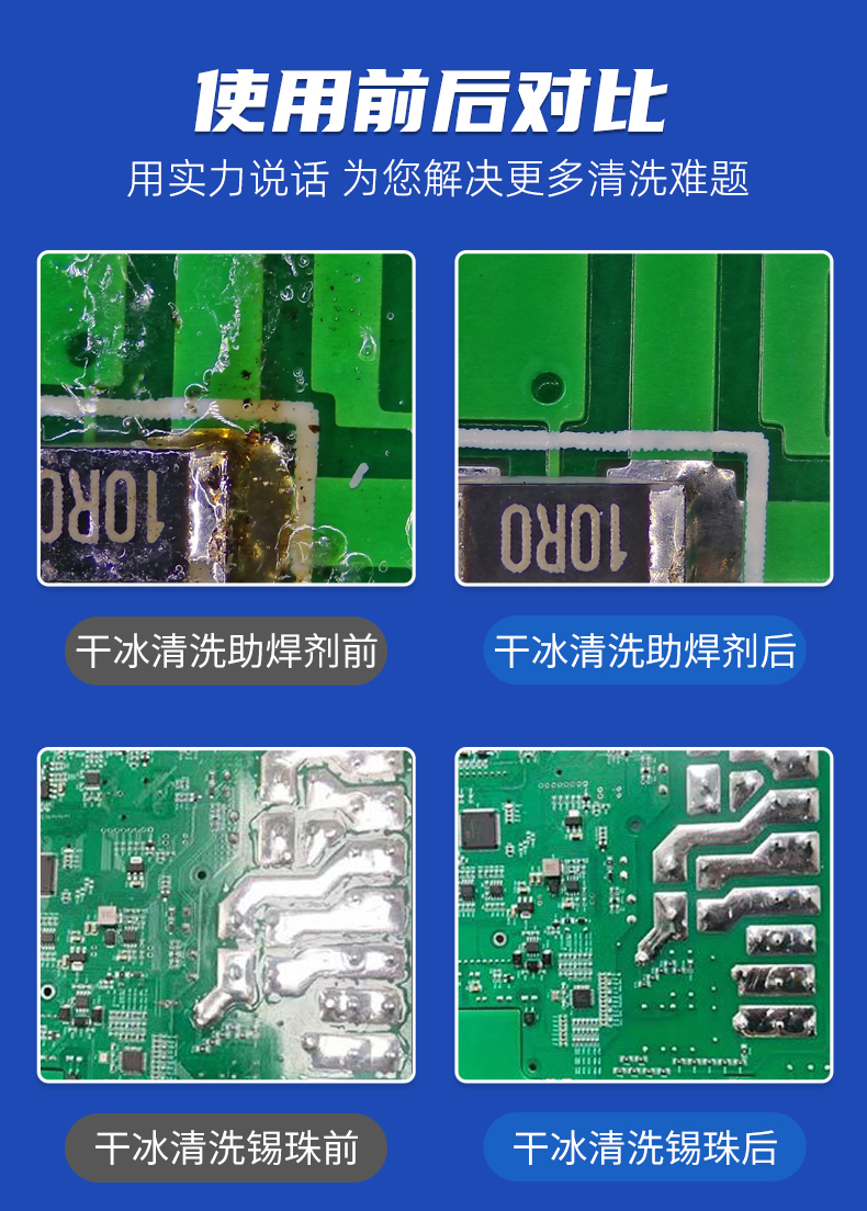 干冰清洗的优势在于其高效的清洗速度,与传统清洗方法相比较,干冰清洗的速度远远高于传统清洗方法。