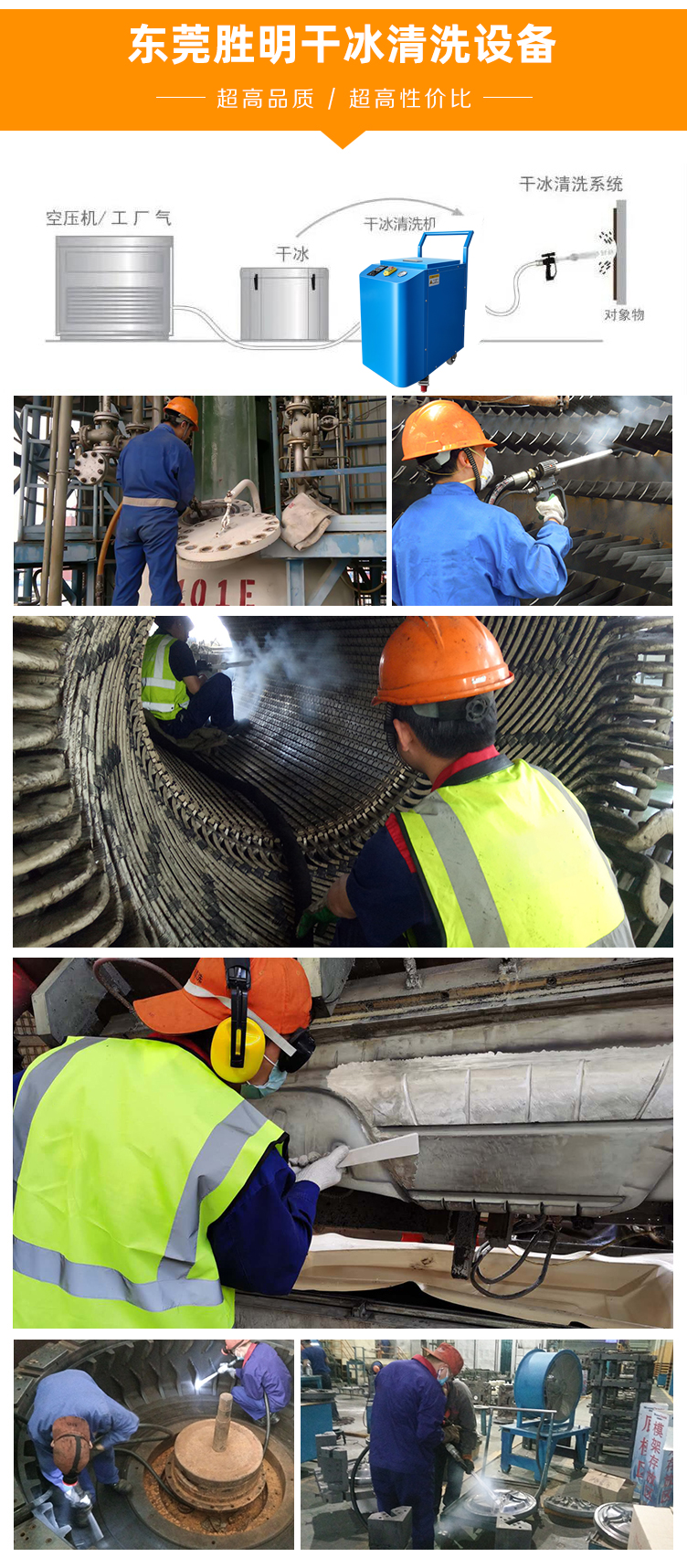干冰清洗法最大的优点是效率高,其他方法要十几个小时,而干冰清洗法2-3小时就可以清洗干净。而且操作方便,可以进行现场操作。