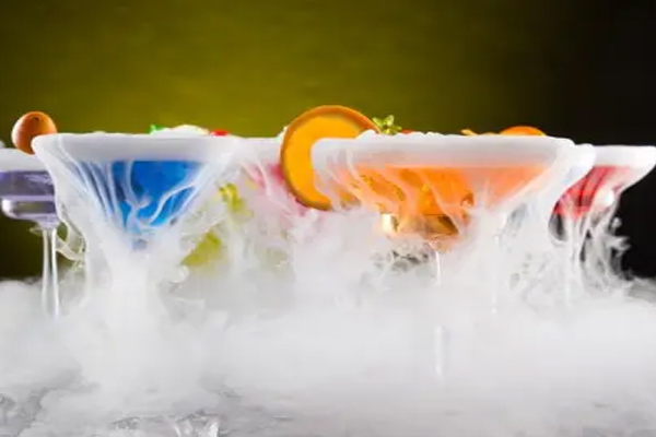 舞台效果随着社会和科技的进步,人们对食物的追求不再是温饱,更多的是品味和高品质的氛围。当带有白烟景观的菜肴和饮料端上桌时,整个宴会的格调无疑会更高。这种迎合视觉享受的需求也让干冰的云海效果有了更广阔的舞台。目前,干冰在食品生产中的应用已经越来越成熟。梦幻生啤酒、冰鲜龙虾、干冰冷饮等特色菜肴不仅满足了人们的食欲,也丰富了人们的视觉享受。