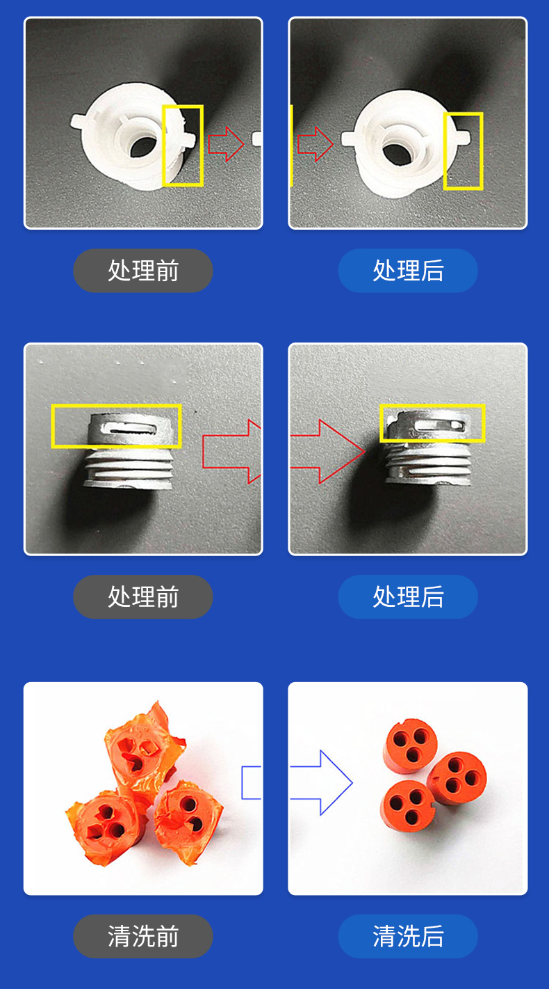 干冰粒在接触时会升华(蒸发),清洗过程中没有产生化学物质、无毒、非磨料、非易燃、非导电;消除化学清洁的成本和危害,避免昂贵的环境清洁要求。