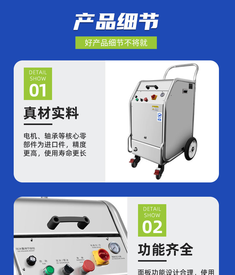干冰清洗主要的设备是一台干冰清洗机和一台空压机,就可以对产品或者设备进行清洗作业,操作也相对而言比较简便