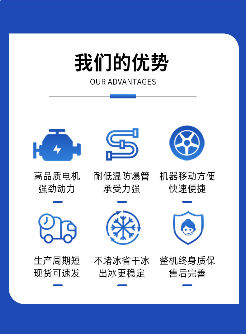 干冰清洗降低了清洗的人工成本、生产设备的停机时间和废物处理成本,从而减少了清洗的诸多负面影响;并且不需要干燥和冷却时间,降低了很多不必要的成本。