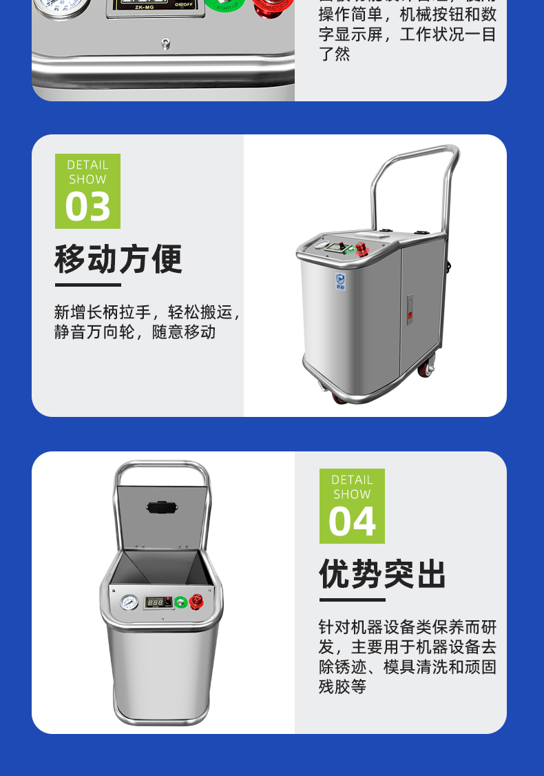 干冰清洗主要的设备是一台干冰清洗机和一台空压机,就可以对产品或者设备进行清洗作业,操作也相对而言比较简便