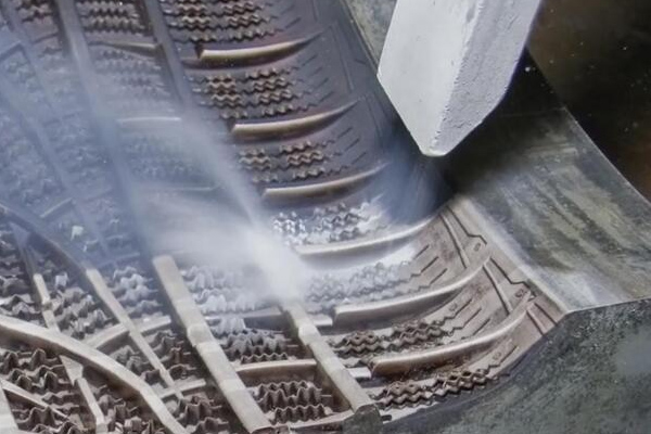 干冰清洗是一种利用固态二氧化碳(干冰)颗粒在超低温下进行清洁的技术。当干冰颗粒高速喷射到轮胎表面时,迅速引发物理冲击和热冷交替效应,使附着在橡胶表面的污垢和氧化物迅速脆裂并脱落。干冰在接触到轮胎表面后迅速升华为气体,不留下任何残留物。这种无损、无残留的清洁方式,正逐步成为橡胶轮胎翻新领域的标准清洁方法。